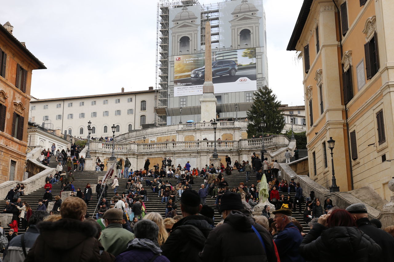 そして最後にスペイン広場。多くの人でにぎわってます。ここはローマの休日という映画でオードリー・ヘプバーンがジェラートを食べたことで有名ですね。