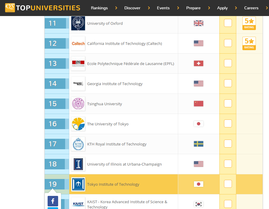 Tokyo Institute of Technology is 20th ranked in The Global University Employability Ranking 2016 and 19th ranked in QS World University Rankings 2016 Engineering - Electrical & Electronic.