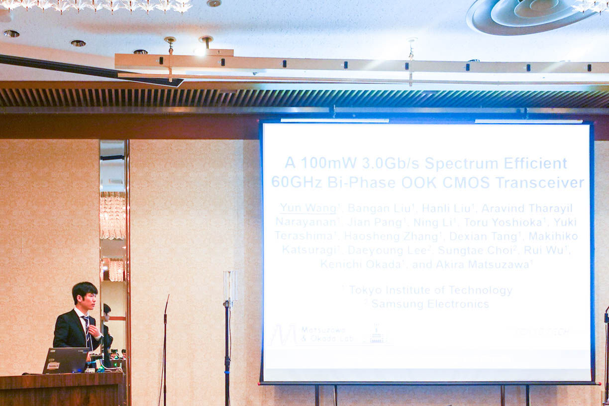 Yun Wang, Bangan Liu, Hanli Liu, Aravind Tharayil Narayanan, Jian Pang, Ning Li, Toru Yoshioka, Yuki Terashima, Haosheng Zhang, Dexian Tang, Makihiko Katsuragi, Daeyoung Lee, Sungtae Choi, Rui Wu, Kenichi Okada, and Akira Matsuzawa,“A 100mW 3.0Gb/s Spectrum Efficient 60GHz Bi-Phase OOK CMOS Transceiver,“IEEE Symposium on VLSI Circuits (VLSI Circuits), Kyoto, pp. 298-299, June 2017.