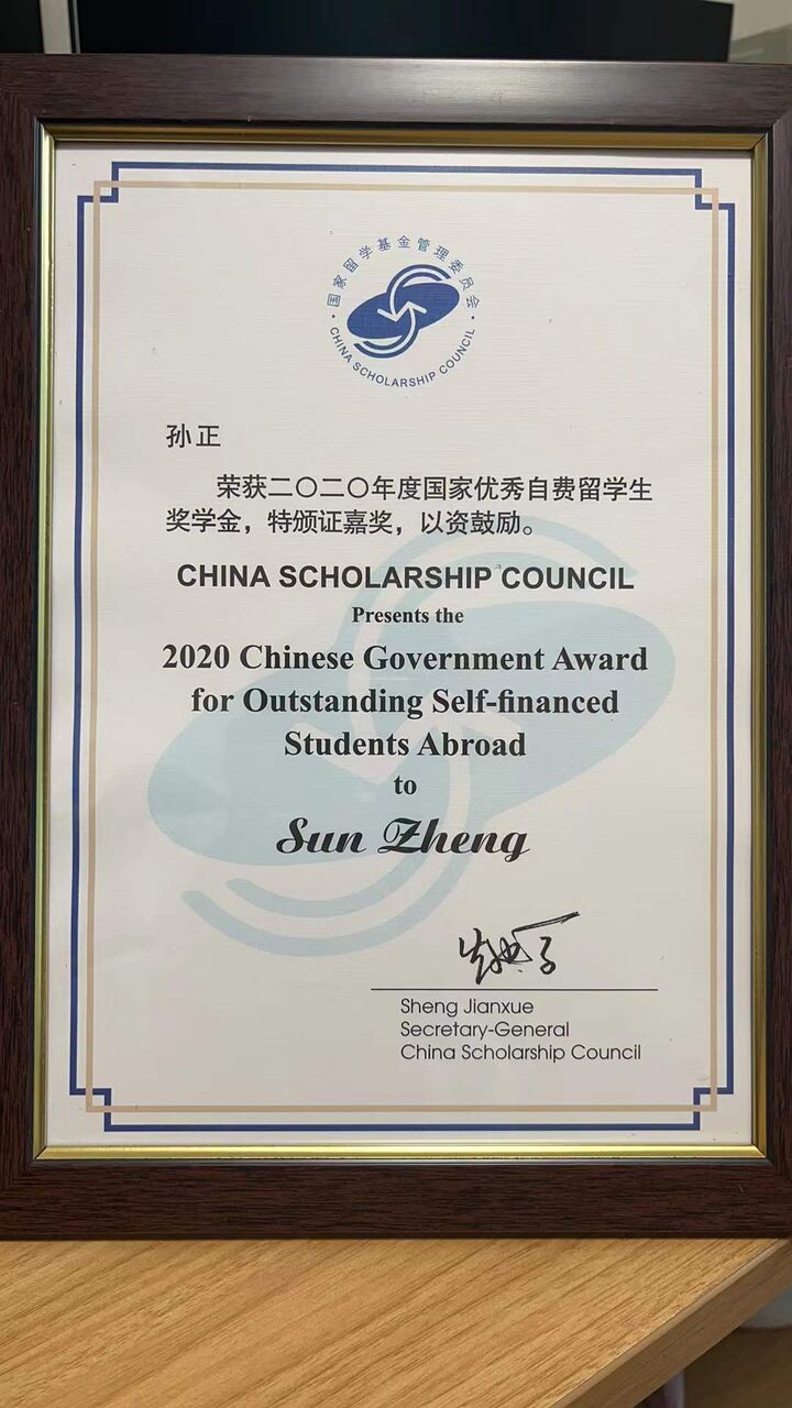 Sun-san won the award from China Scholarship Council 2021-12-20 15 words 1 minutes Sun-san won the Chinese Government Award for Outstanding Self-financed Students Abroad of 2020! Congratulations! SunZheng_Award Please enable JavaScript to view the comments powered by Giscus.