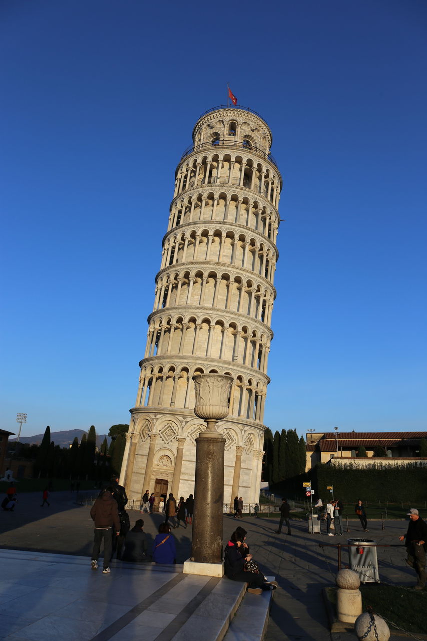 中央のオブジェと比較すると、結構傾いてるのがわかるかと思います。一時は5.5度近くまで傾いていたらしいのですが、なんやかんやで今は4度くらいらしいです。たかが4度、されど4度、塔の内部は螺旋階段なのですが、平衡感覚が狂う狂う…