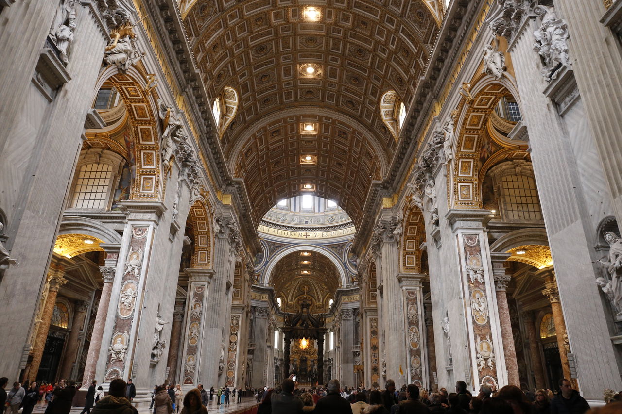 こちらがサン・ピエトロ大聖堂内部。キリスト教の教会建築としては世界最大ということもあり内部はとても豪華です。お祈り専用のスペースもあり、まさしくキリスト教徒のための教会でした。